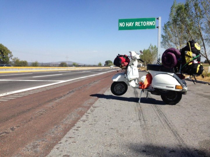 Mi primer parada era Puebla y no conocía ni siquiera la salida, por lo que tuvieron que encaminarme, avance muchos kilómetros hasta encontrar en lo más alto del camino, un letrero en la carretera que decía «no hay retorno», me paré y tomé una foto, sí, parecía una sentencia pero también una seductora invitación, de esas que me encantaba sorrajarme por la nariz, solo que ahora representada en líneas y líneas de carretera federal. Sabía que de volver, no sería el mismo.